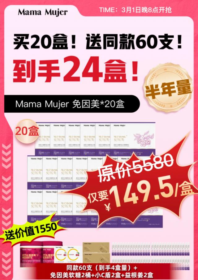 目前原价5580的免因美半年装,活动3588?20盒,买20盒狂送60支,到手24盒量❗单箱低至149.5元,再送价值1550元?