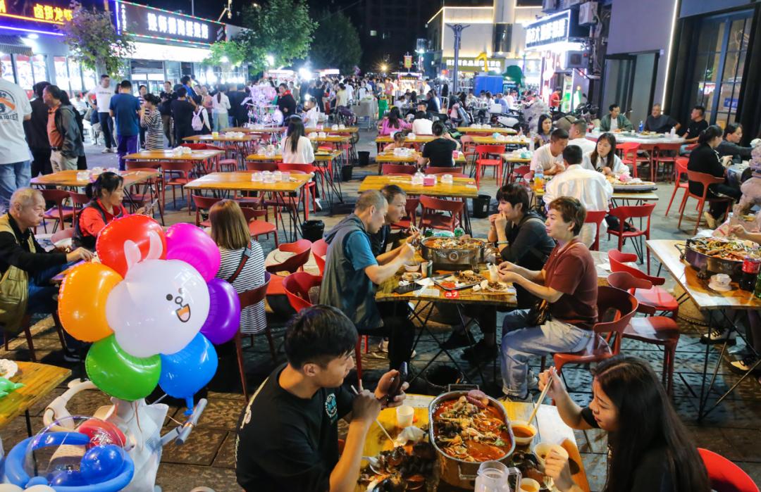 走进盐河古巷,水幕光影、海鲜烧烤、旋转水车、川流不息的群体,以及“连云港口音”剧场飘出的五大宫气和淮海戏的雅曲戏腔,共同构成了连云港独特的“清明上河图”。