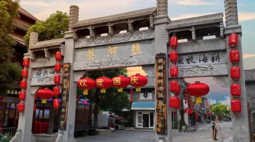 河的两边都是柳树,随风摇曳的树枝和波光粼粼的河水应该和问候。在河的另一边,不时可以看到休闲消遣的市民在那里听音乐、跳舞、唱歌、围桌打牌。在这里,河流是一条古街、一条古巷、一座古牌坊和一条古石板路。黛瓦青砖、飞檐斗拱、格子木窗、糖葫芦等红灯笼和各种招牌点缀着这条街道的繁荣与兴奋。
