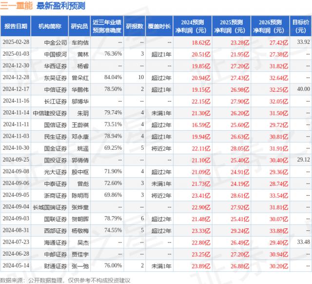 曾朵红东吴证券有限公司 , 郭亚男 , 近日,胡隽颖对三一重能进行了研究,并发布了2024年的调查报告 年度业绩快报点评:业绩符合预期,订单创下新高,给予三一重能买入评级。