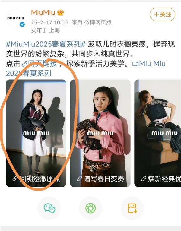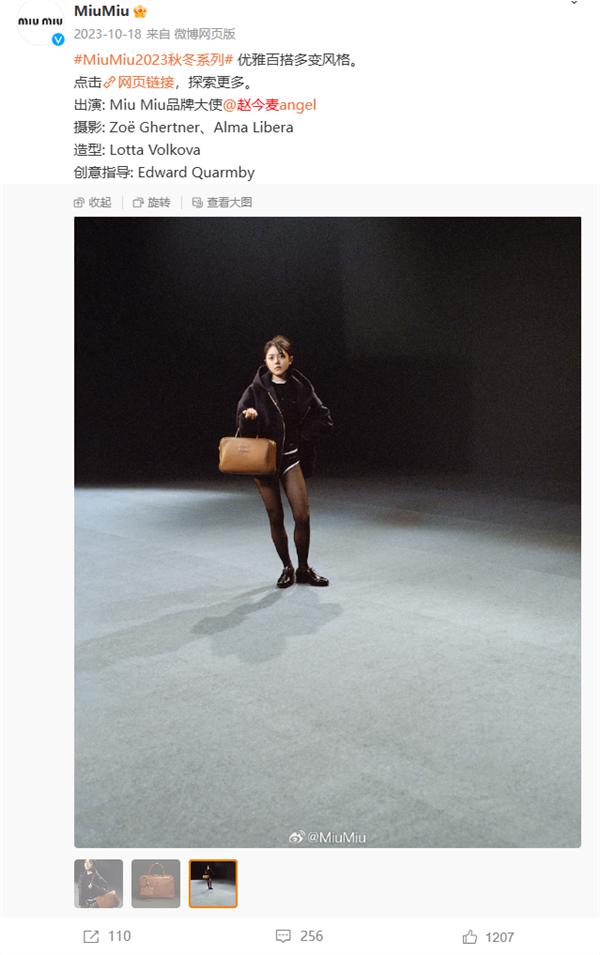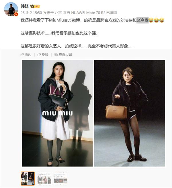 时尚品牌MiuMiu赵今麦的照片被吐槽 博主:闭眼瞎拍也比这个强。