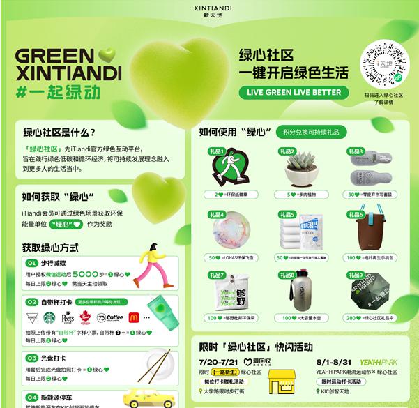 在共享建设方面,物业与租户签订绿色公约,倡导低碳无废生活,办公区实行双面印刷,禁止一次性用品,鼓励新租户沿用前租户进行装修,减少装修垃圾的产生。注册“ i “天地”会员商场客户,推出绿心社区行动, 通过积分奖励,激励光盘等情况。