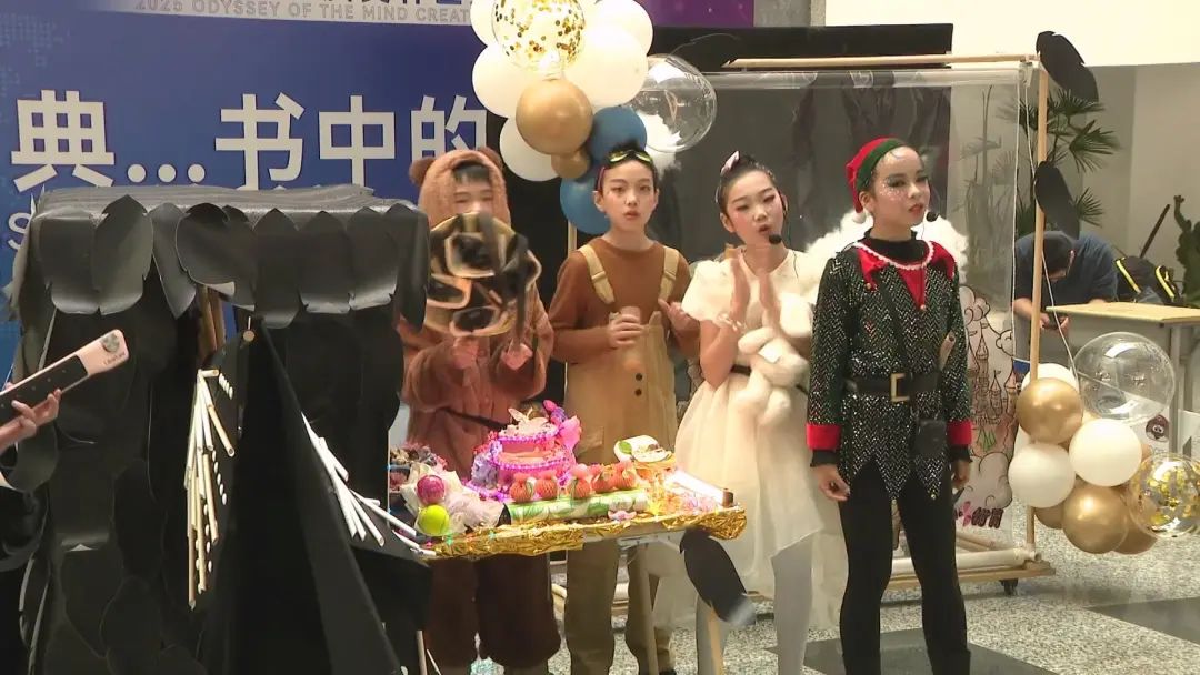 今年的头脑奥林匹克创新大赛有六个长期问题,分别是“精彩比赛”、“人工智能设备”、“古典……书中的美食”、“动物救援”、“天文奥德赛”和“世界奇观”。这些问题非常开放,不仅要求学生大胆探索未知领域,充分发挥创新思维,还要引导他们团结互助,在解决问题的过程中追求独特的创造力和解决方案。在《古典...书中的美食》的比赛现场,记者看到,参赛队从组委会给出的古典作品中挑选了《彼得与温蒂》,创作了一场关于原厨师角色的表演,并根据所选作品呈现了蛋糕、馄饨、甜筒、玉米粉等六种美食的宴会。参赛选手汪告诉记者:“大家去湿地观察鸟,发现鸟妈妈喂孩子的时候,把食物放在包里,不仅可以消化,还可以喂孩子。根据这一灵感,我们加入了鸟类的角色,用‘囊’来调节玉米面。”参与者刘同学告诉记者,“这六种食物都是我们最喜欢的,所以我们选择它们作为晚宴上的美食。”