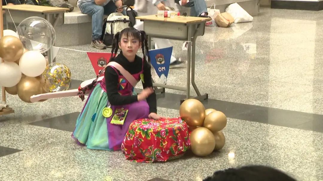 在赛场上,选手们还增加了许多音乐,为表演增添了作品的轻松、活跃和幽默。参赛选手刘告诉记者:“我们的音乐分为七段,其中大家都特别喜欢《蓝精灵》这首歌,朗朗上口,也能突出我们欢快活泼的主题。此外,说唱(说唱)是我们下课后一起编的,以显示我们一起参加宴会时的快乐心情。”