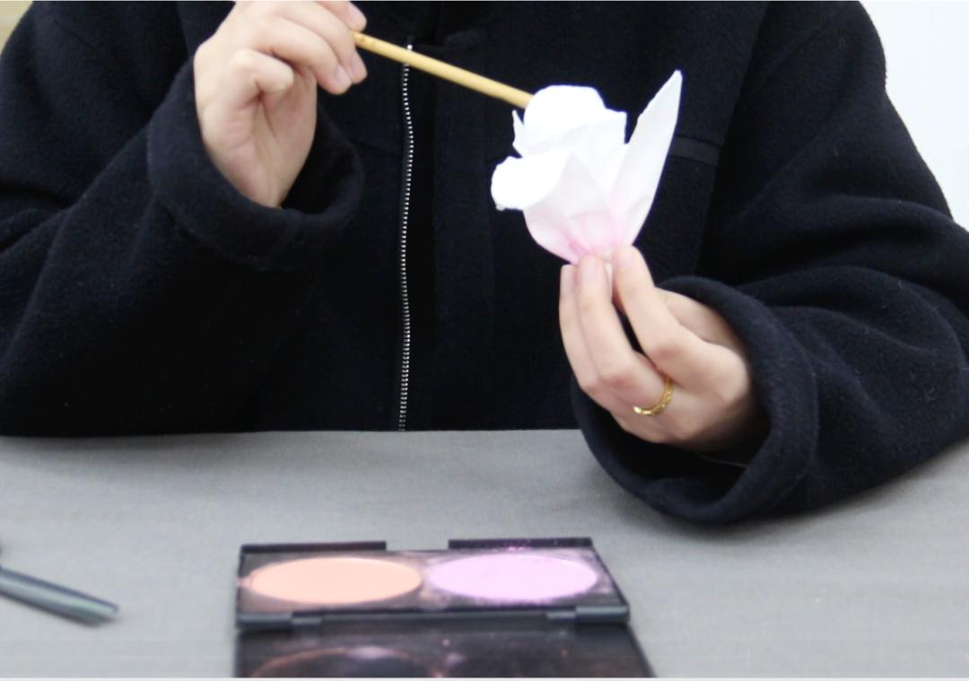 取粉紫色腮红,用刷子给玉兰花内外着色。