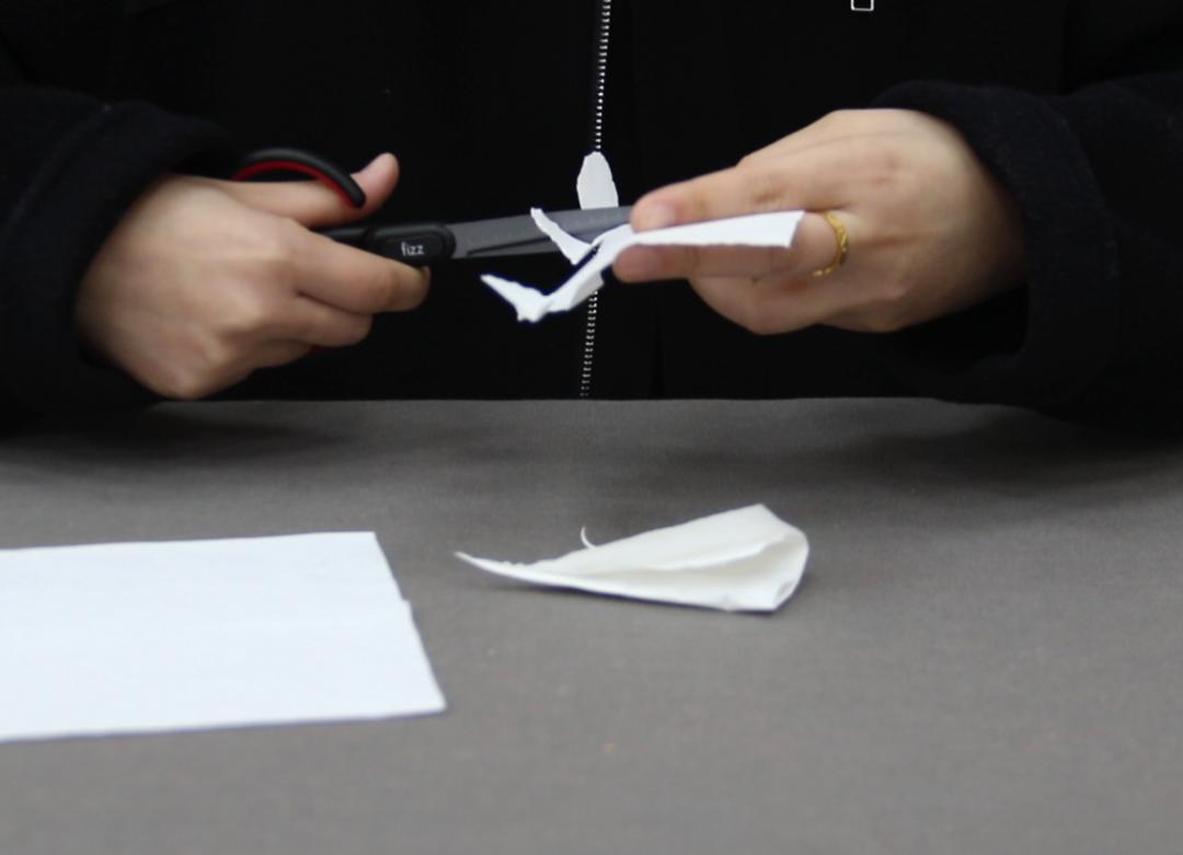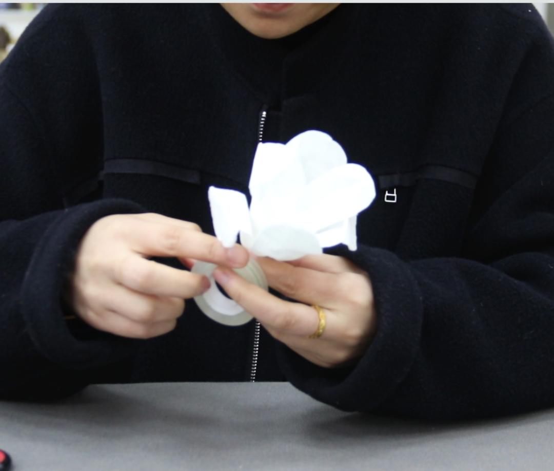 把花心放进去,把两张纸巾重叠起来,包在花心周围。