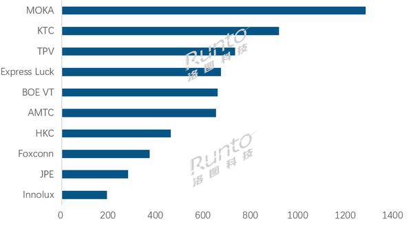 Express Luck(彩迅)1 月出货约 67 在科学代工厂中,万台排名第四,同比下降幅度较小。 3.0% 和 2.8%。BOE VT(视讯)1 每月出货量约为 66 在科学代工工厂中,万台排名第五,同比增长 3.0%。