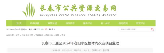 项目名称:长春市二道区 2024 老旧小区楼体内改造项目监理
