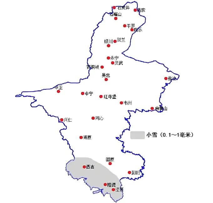 降雨:4 日夜间到 5 日夜,西吉县、隆德县、泾源县均有 小雪(0.1~1 mm);6 日,吴忠、中卫、固原市南部有两个城市 雨夹雪或小雪。