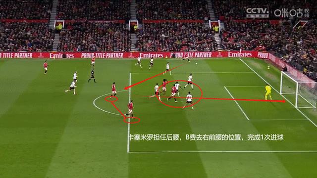 下半场曼联的换人调整也是朝着这个方向发展,只是换了一套攻击特性更强的装备,下半场曼联的换人调整就是把它换成攻击特性更强的装备。 B 费转到右前腰,加纳乔去左前腰,卡塞米罗踢了腰,整体战略框架是无法理解的,B 费扳平比分的进球,也来自于这个系统。