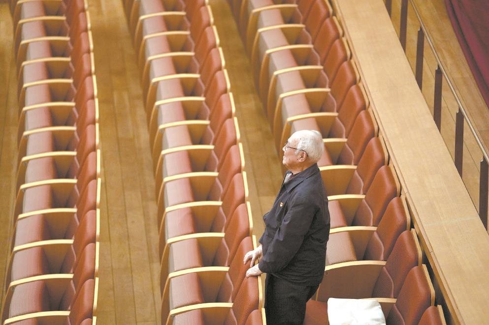 观众台上吕其明听排练。 (上海爱乐乐团提供图片)