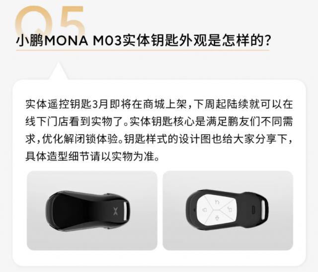 小鹏 MONA M03 公布汽车实体钥匙外观,本月上架。