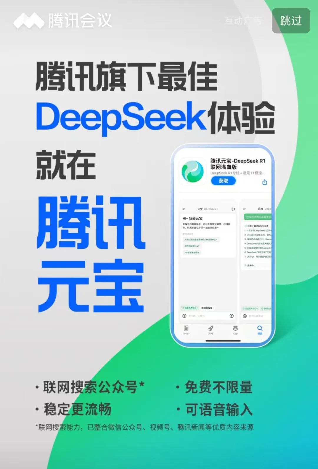 无论是腾讯系的微信,在接入DeepSeek之后,腾讯元宝都开始了撒钱的方式,QQ,或者是哔哩哔哩、知乎、小红书等平台,甚至是海外媒体、应用商城,你总能和腾讯元宝不期而至。