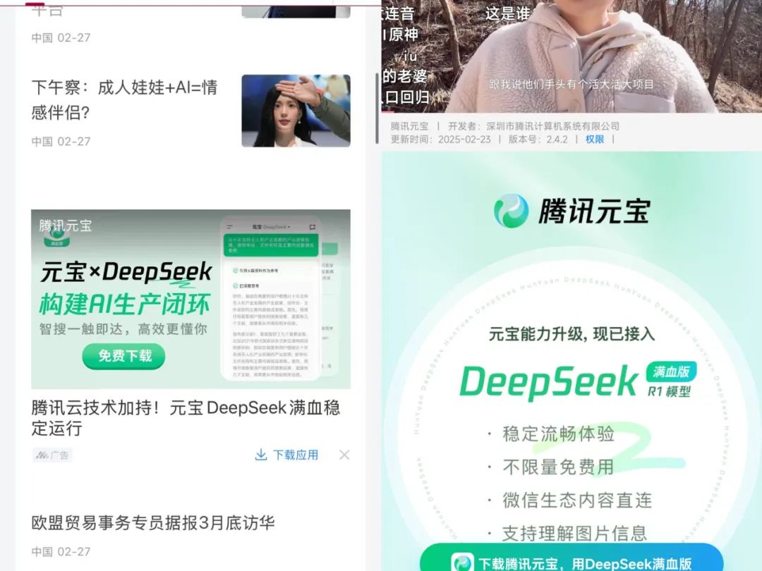 和DeepSeek结婚后,曾经低调的腾讯元宝,瞬间占据了C位的流量。