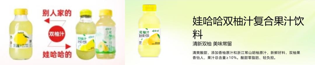 又是这款被柚香谷“关心”的娃哈哈双柚汁,今年也出现在娃哈哈官网的商品序列中。