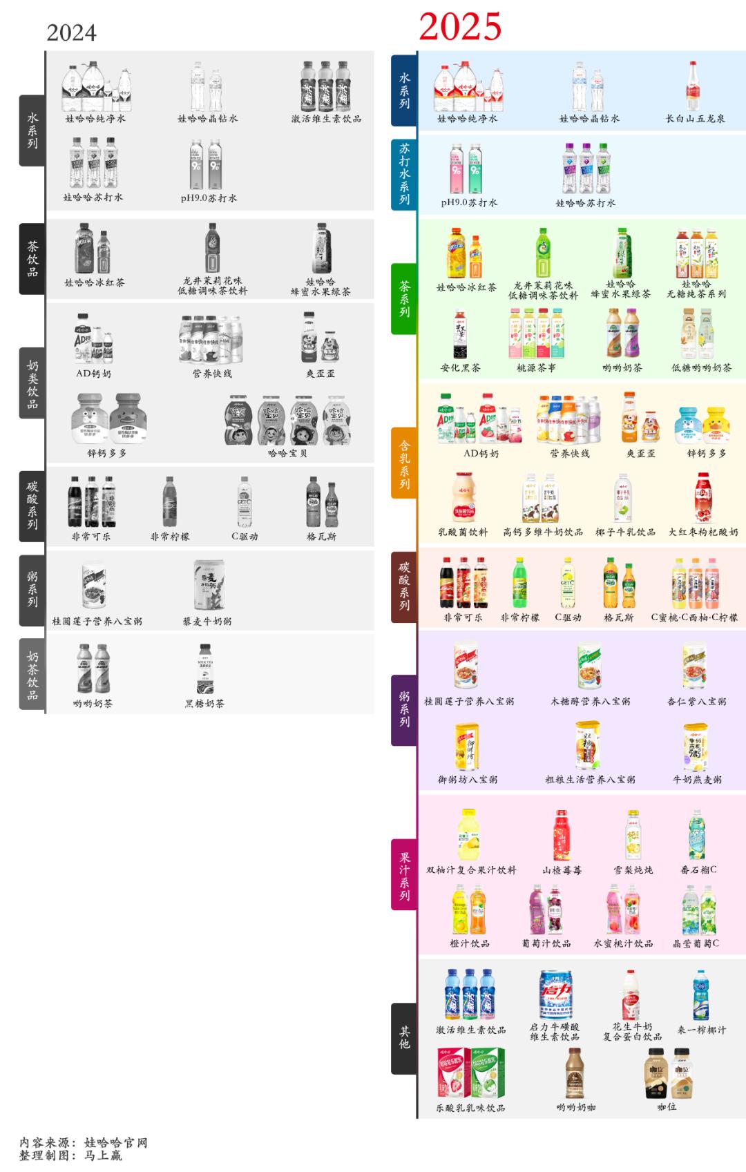 就产品线而言,2024~2025,算是娃哈哈产品线上重新调整整理和充实的一年。