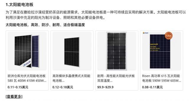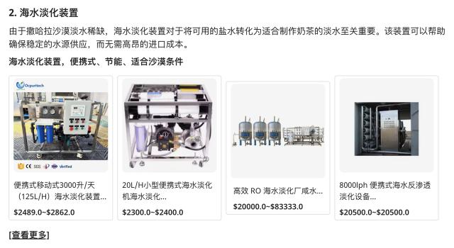 就比如我跟 Accio 说,我要在撒哈拉沙漠开一家奶茶店,它居然把外贸平台阿里国际站的供应商,都给我扒出来了。