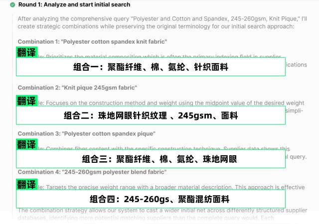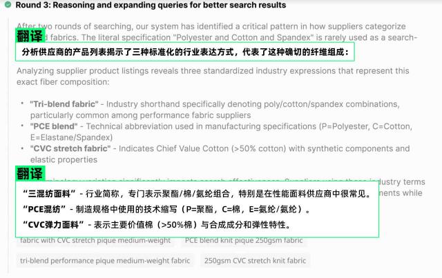 这么说吧,为了帮助差评君找到这种布料,在挑选出 200 个商品前, Accio 自动对全网 126600 一种相关类别的商品,已经进行了 5 轮子搜索,又对了 200 交叉验证了一个产品的详细信息。