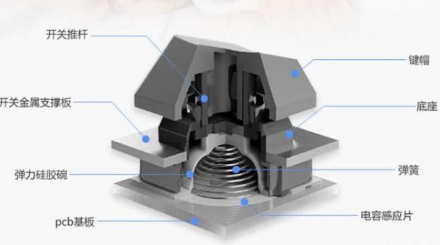 硅胶碗和感应片有效缓冲了静电容轴的敲击力,所以声音很小。