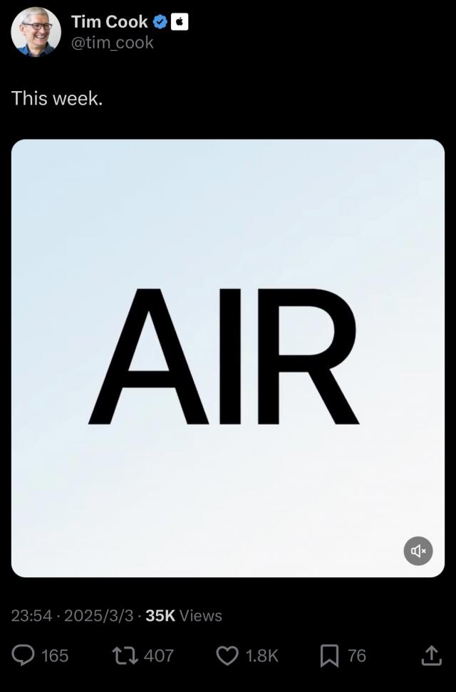 IT 世家 3 月 4 日消息,库克在 X 该平台发布消息,宣布本周即将迎来。 Air 新产品,参照之前古尔曼发布的文章,这款新产品最有可能搭载。 M4 芯片 MacBook Air 模型,但也可能是搭载的。 M4 芯片 iPad Air。