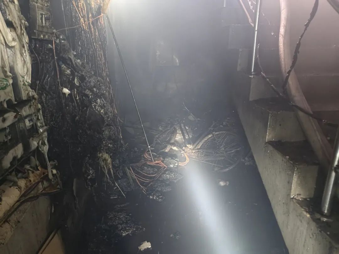 堆放在地下室楼道的杂物起火