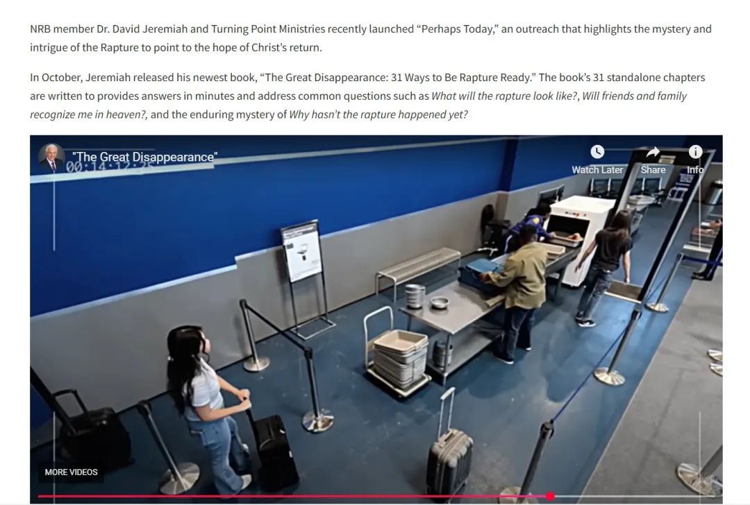 在谷歌反搜截取网传视频关键帧,有YouTube客户在推广一个名为“也许今天!”(Perhaps Today!)在活动中使用了网爆片段。2023年11月,位于美国华盛顿的基督教传播协会NRB在谷歌搜索了更多关于此次活动的信息,NRB成员David TurningGeremiah及其基督教组织 “也许今天,Point开始了!该行动旨在强调基督教中的“被提及”(Rapture)神秘,指向基督再来的希望。圣经中多次出现“被提”。
