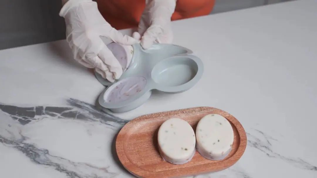 静置24-48小时后出模,薰衣草手工皂就完成了。