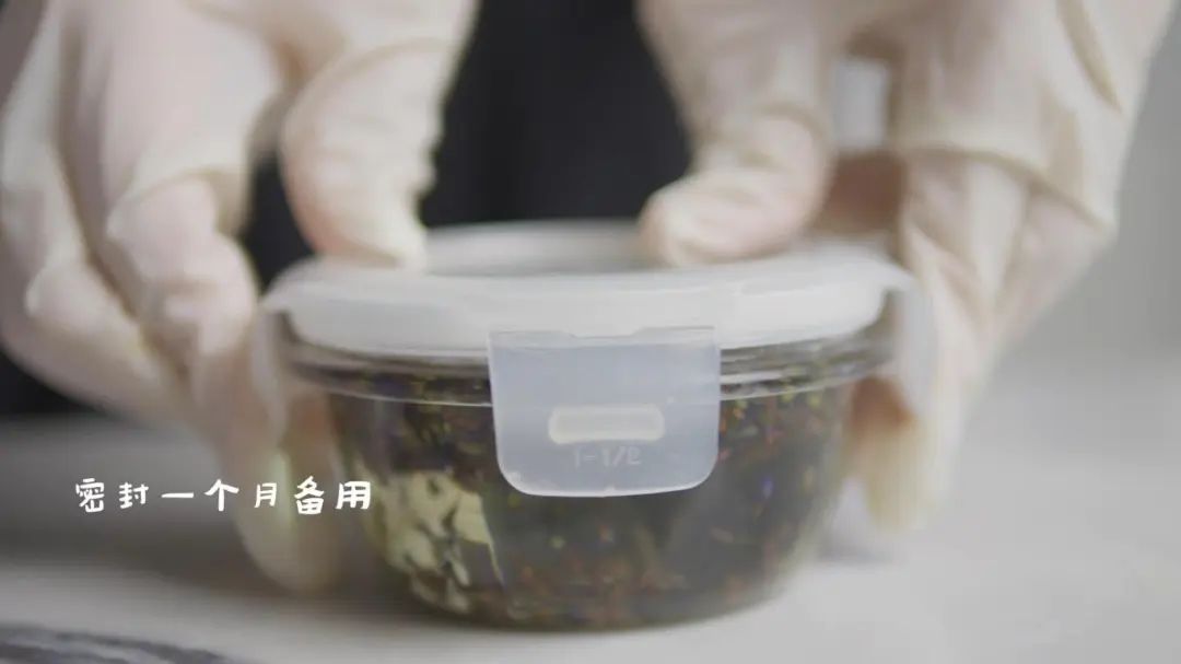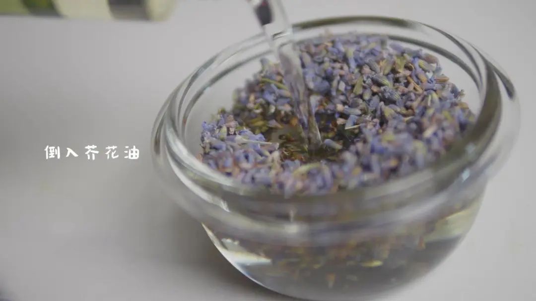 倒入芥花油不过花瓣,搅拌后密封,放置一个月后即可使用。