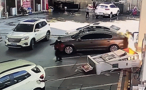 标题:“汽车启动时起火,加油站员工20秒处理!”