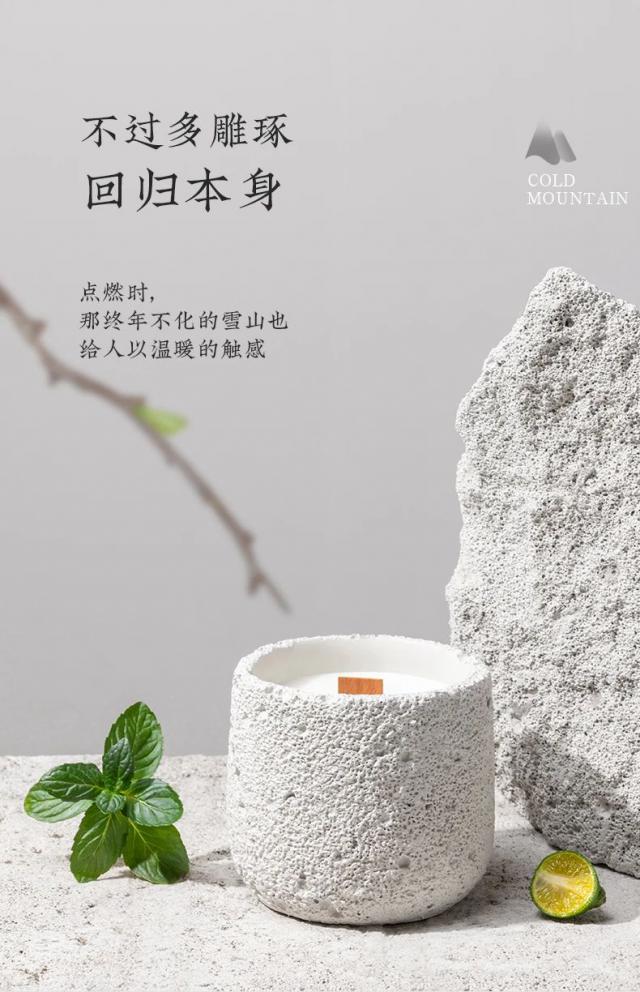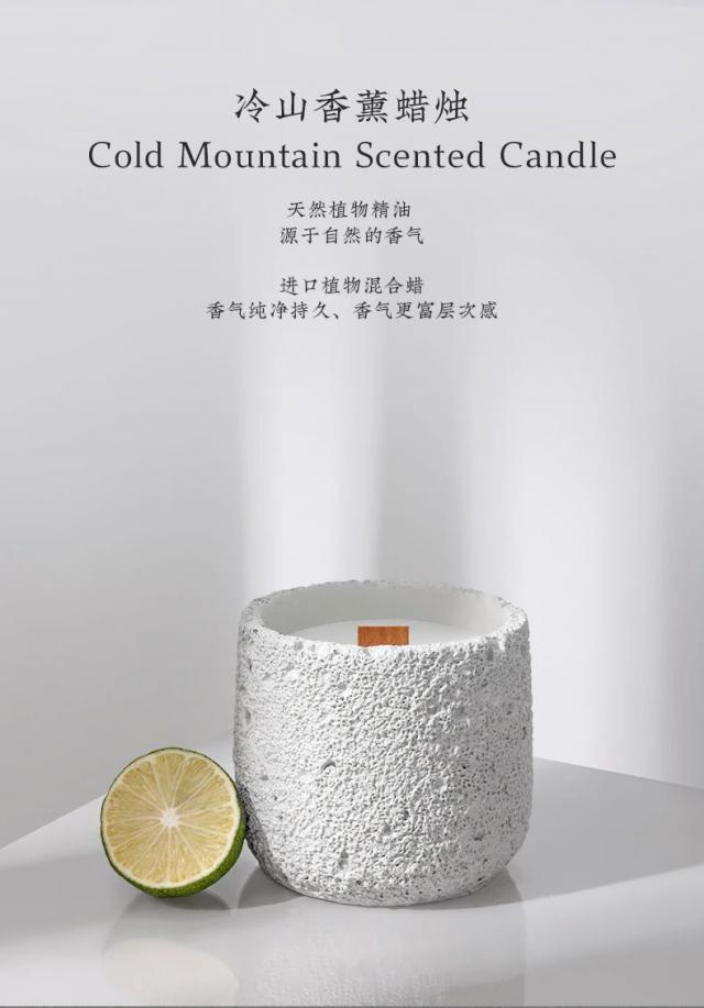 【宋礼 · 冷山系列:香薰蜡烛,选用蔓草植物中的精油混合物,源于大自然的香味,带来愉悦的气味。