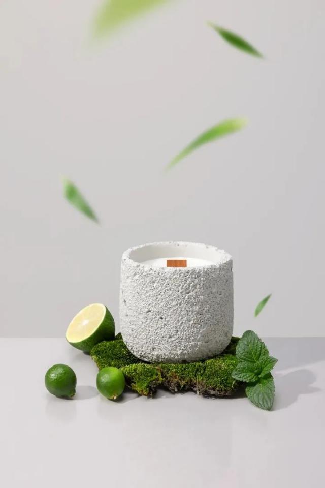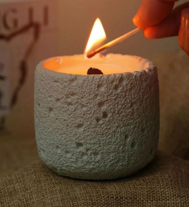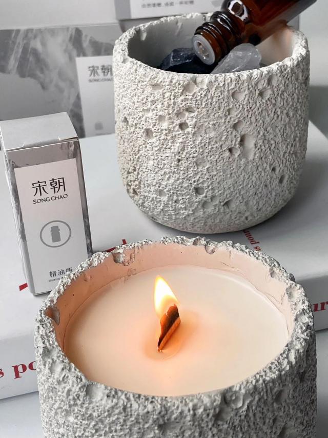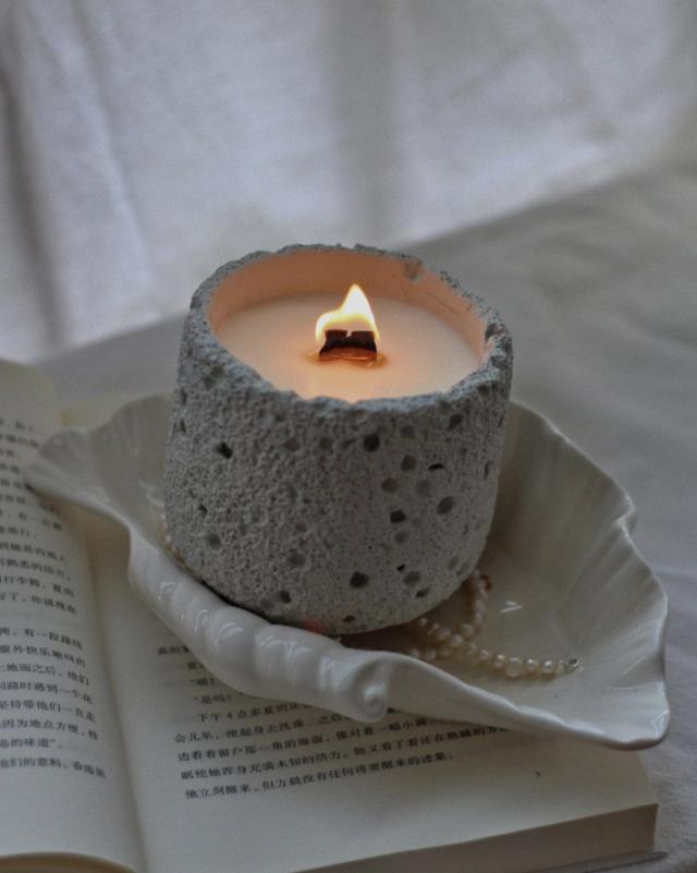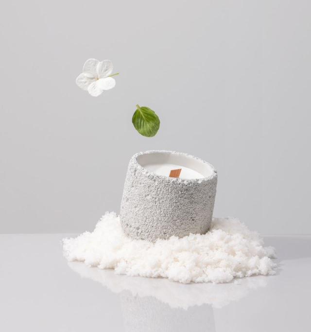 【宋礼 · 冷山系列:选用水泥材料制作容器,结合柔软雪白的蜡,点燃时,那一年四季不化的雪山也给人以温暖的触感;