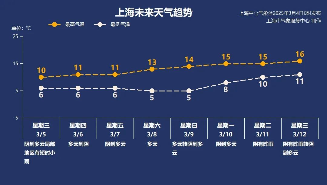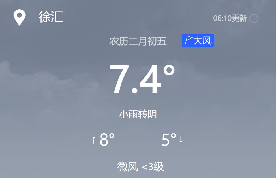 三月五日(星期三):阴天部分地区有短时小雨,6~10℃。