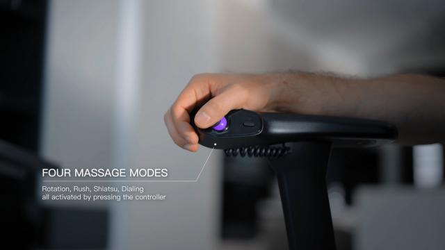 Hybrid M 按摩电竞椅内置四种按摩模式,可以选择位于右扶手的按钮,用户也可以通过手机应用进一步调整按摩压力和路线。