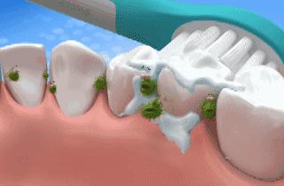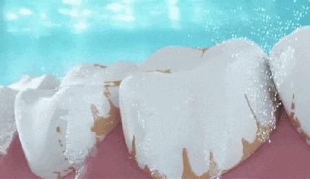 小苏打到刷牙的时候通过轻微的物理摩擦,可以磨掉牙齿表面的牙渍,也可以深入牙齿。