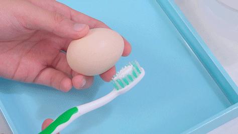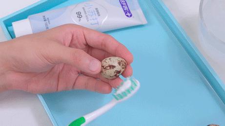 肉眼可以看到鹌鹑蛋的黑斑被刷干净。