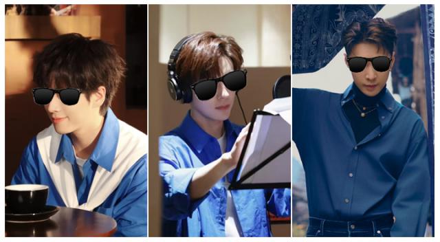 男性明星穿着纯净、高级的克莱因蓝衬衣,不管是简单的白裤子,单宁裤,都显得清新浪漫。
