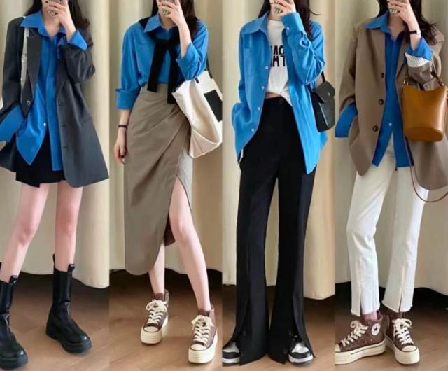 特别是在春天和夏天,穿一件蓝衬衣,可以让你的气质更干净、更高级。