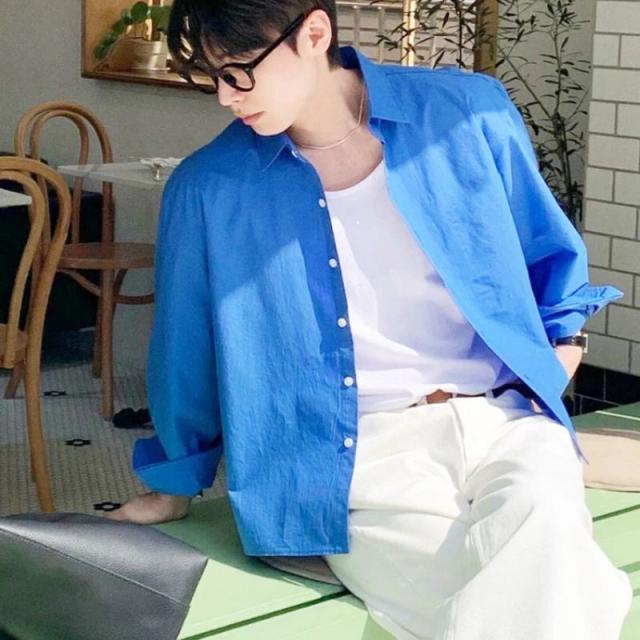 男孩子穿腻了高级灰,真的很推荐试试这件克莱因蓝衬衣,那叫“进攻可攻退可守”。