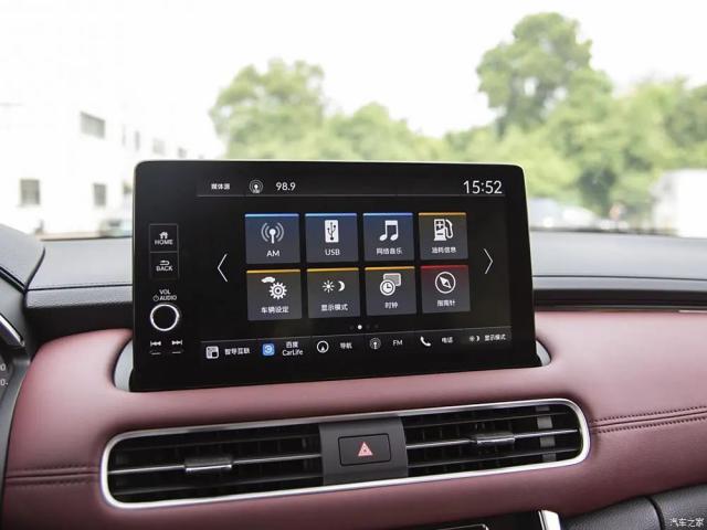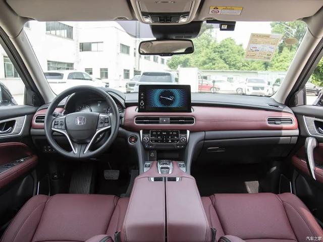 车内有大量的皮革包裹,并采用暗红色配色。悬浮式中控面板的宽度是 10.1 英尺,内置 Honda CONNECT 3.0 系统。手机充电接口、座椅通风、感应开启尾门、智能远光灯、智能远光灯、 Honda SENSING 智能化驾驶协助等功能。