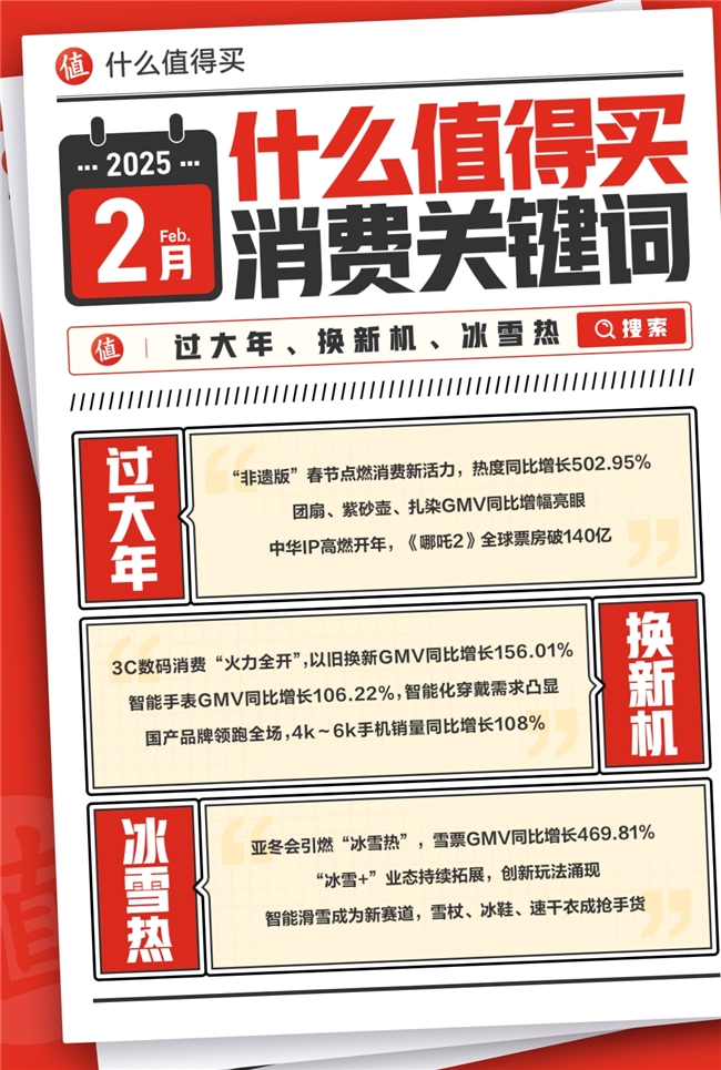 什么值得买发布2月消费关键词:过大年、换新机、冰雪热