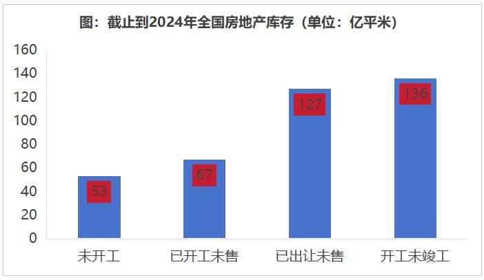 大量库存为“在途库存”,即未开工(53亿平方米)、开工未售(67亿)。