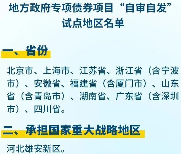 2024年12月25日,中国发布《关于优化和完善地方政府专项债券管理机制的意见》,明确指出,我国将发布专项债券项目审计权限,选择部分管理基础良好的省份,在承担国家重大战略的地区开展专项债券项目“自审自发”试点,支持经济大省发挥“重中之重”作用。广东是一个“自审自发”的试点省份。