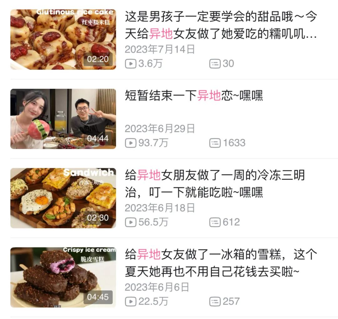 2023年,小杜认识了在杭州工作的女友小雪,从此他的视频又增加了一个重要系列——“为异地女友做饭”。