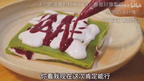 最终的成品不仅有红色和绿色的时尚配色,还有奶油和太浓的饼皮。看起来像很多东西,但就是不像千层,被网友评价为“甜品凉皮”。