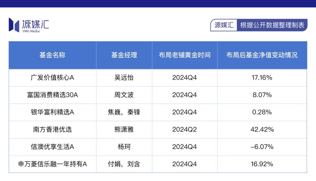 据源媒汇统计,广发基金主管吴远怡管理的“广发价值核心A”在持股规模最大的基金中,截至2025年2月底,通过2024年第四季度对老铺黄金的加仓布局,净值上涨17.16%。