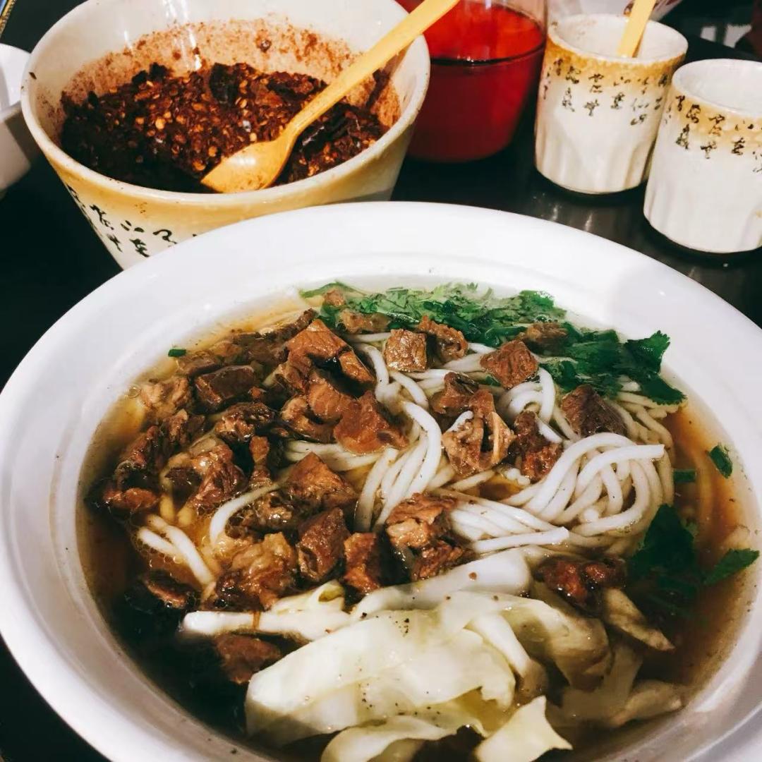 安顺等地,还有红烧牛肉粉,叫红油汤头。这里的“红烧”不是传统的带生抽糖的红烧,而是将牛肉和豆瓣酱、巴赞辣椒一起炒,然后用卤汁倒在煮好的米粉上,最后加入一勺红辣椒油。红烧牛肉粉色泽诱人,麻辣浓郁,嫩米粉充满辣味,让人汗流浃背。