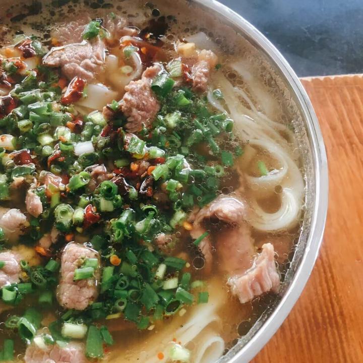 选材方面,牛肉粉多用于云贵高原生长的黄牛肉。这种牛肉纤维鲜嫩,气味极轻,非常适合煲汤。鲜牛肉和各种香料慢慢煮成一锅浓汤,捞出牛肉切片备用;另外,贵阳特有的一些“酸粉”在锅里煮熟。