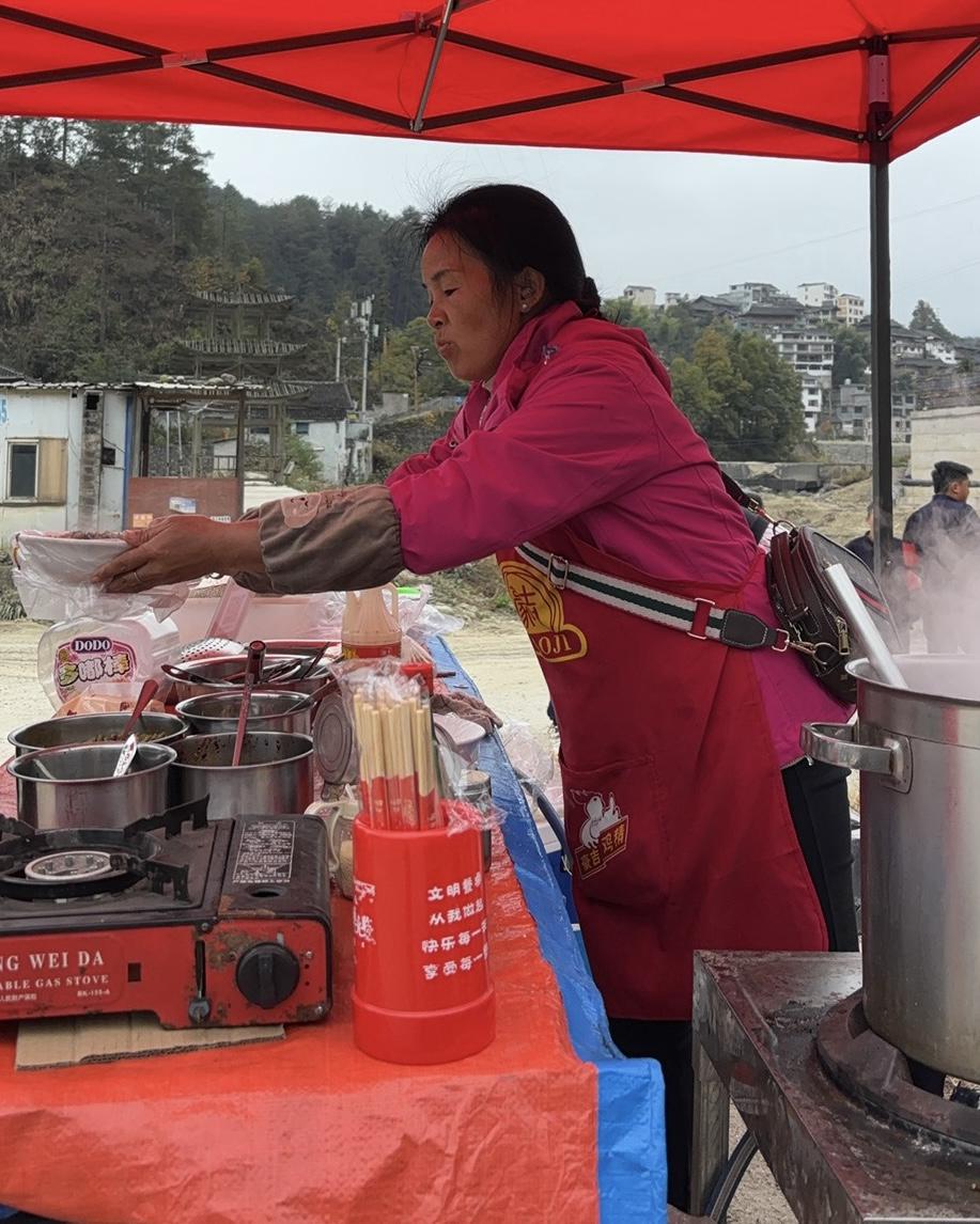 △去年,我在凯里的一个村子里度过了苗年。村口有一个简单的粉摊,只卖辣鸡粉。/阿祯 摄