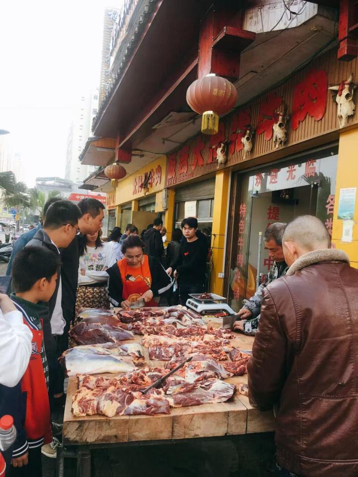 △荔波现在切牛肉粉。前一秒是肉摊上的鲜肉,下一秒就变成了桌上令人垂涎的牛肉粉。/鱼小姐 摄