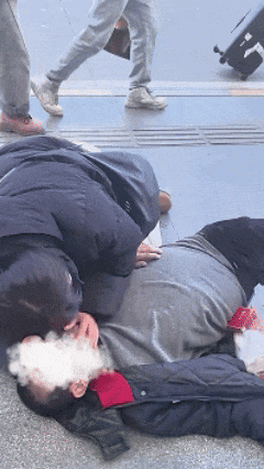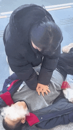 当时,一名乘客在机场大厅门口突然晕倒。当周围群体不知所措时,正在送家人的护士张慧发现了这种危急情况。她迅速跑到事发现场,看到一个老人脸色苍白躺在地上。她分析判断患者失去意识,心跳骤停,情况非常危急!